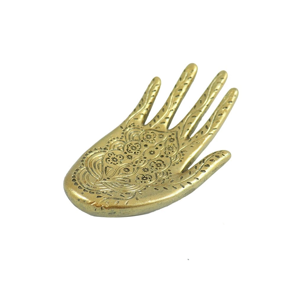 Display your tea light candles or other small house hold items on this beautiful engraved hand tray. This tray comes in a antique gold color and has henna-like patterns engraved through out it.Â