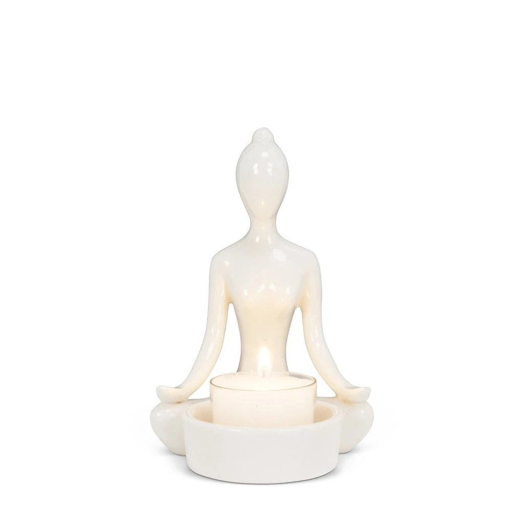 Add some tranquility and peace to any space – including where you practice yoga with this beautiful yoga woman tea light candle holder. This holder comes in two different styles.