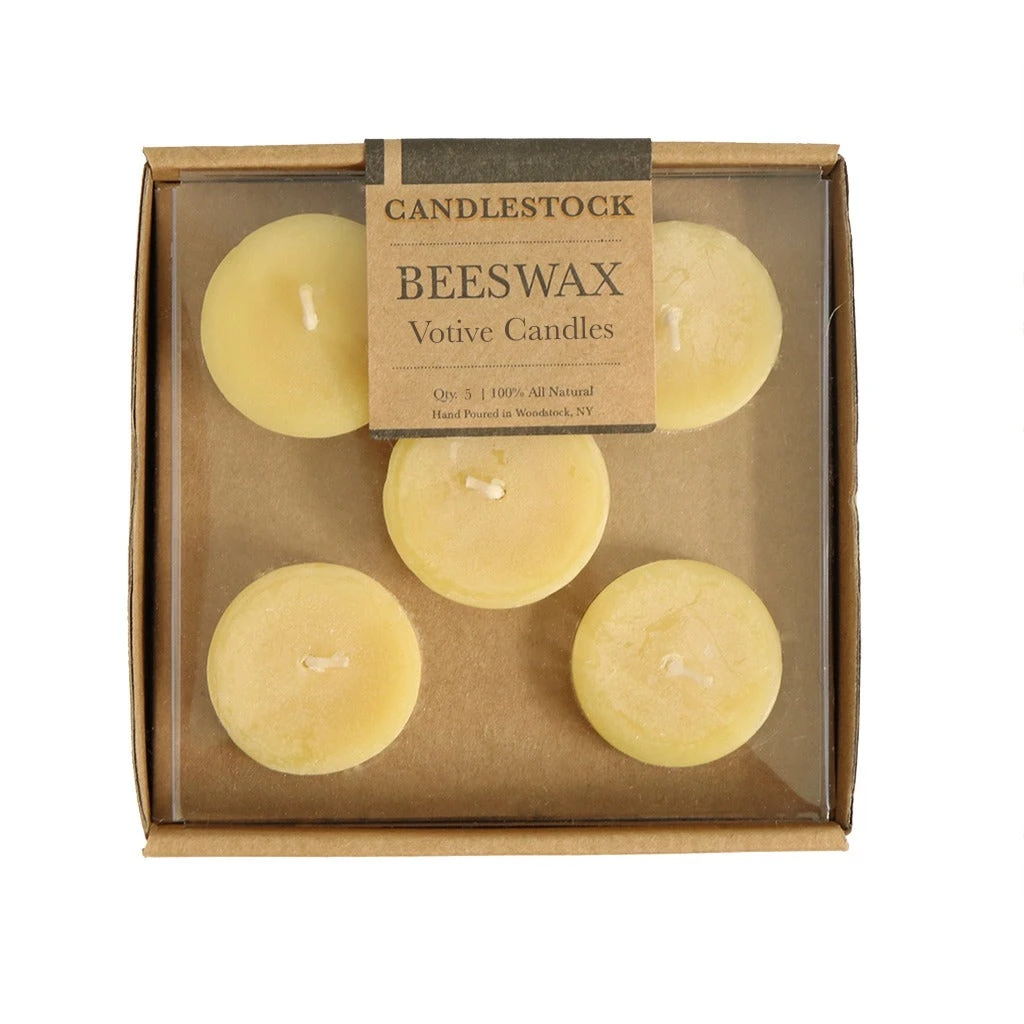 Burn pure, clean, dripless and long lasting beeswax with our beeswax basics bundle that includes 1, 12 pack of beeswax tea light candles and 1, 5 pack of beeswax votive candles.