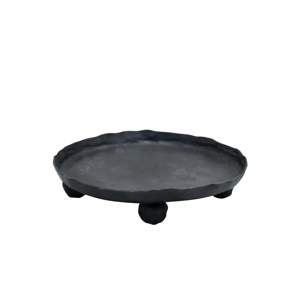 This beautiful pillar candle tray is made made of hand-forged wrought iron.