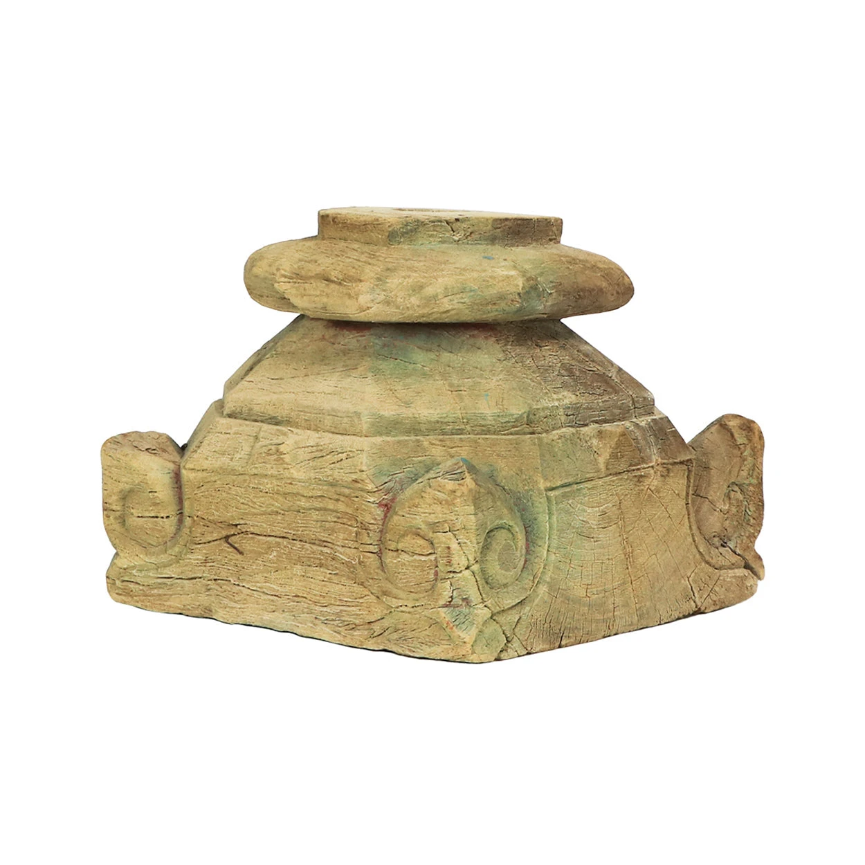 Made from the “capital,” which is the decorative top or bottom of an architectural column, the Bleached Capital Candle Stand is distinctive. The hand-carved wood is a vintage piece from India that is an homage to traditional woodworking. Place a pillar candle atop the Bleached Capital Candle Stand for a modern-meets-traditional display.