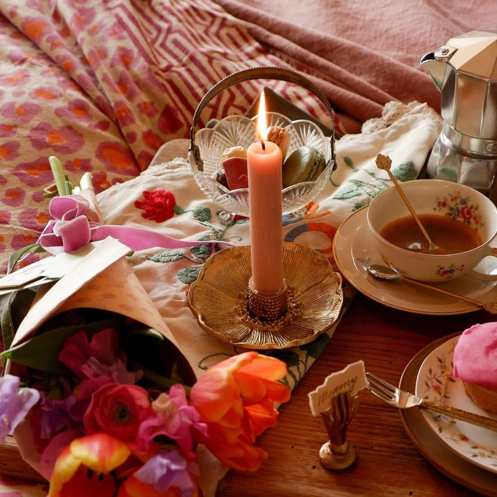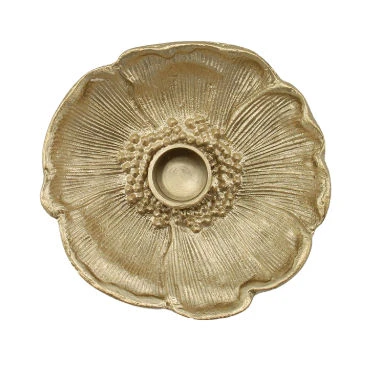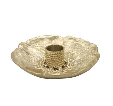 Display your taper candles in this beautiful brass poppy taper candle holder. This elegant piece is made 100% of brass and is the perfect piece to add to any table top.