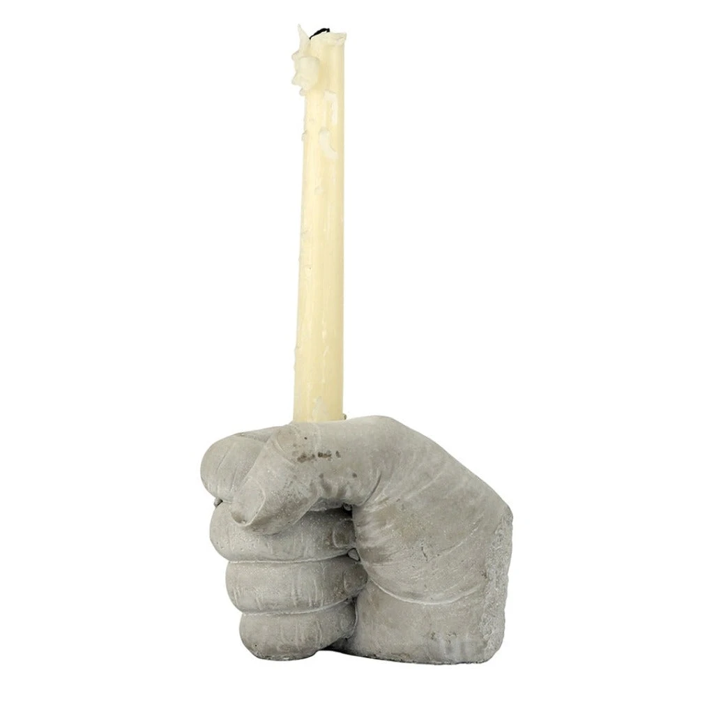 Display your candles in this sculptural hand-shaped taper holder. This design will play well with other art pieces or among your macabre décor.