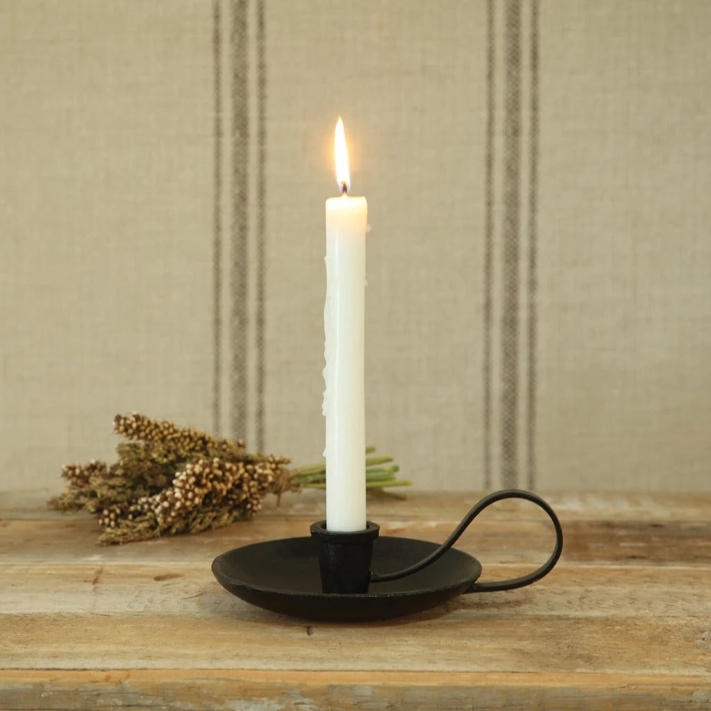 Add a traditional element to your space with this beautiful taper candle holder. The antique black cast iron finish holds a taper candle in effortless style.