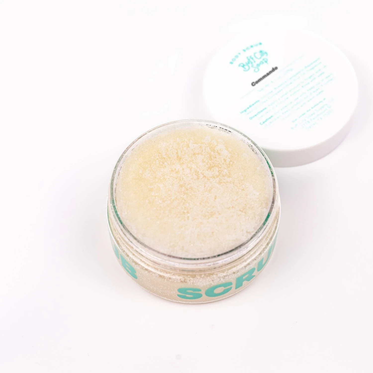 Commando Body Scrub Commando dares you to defy expectations. It’s bold, playful, and fresh, blending sweet and smoky scents in a way that feels inviting yet refuses to fit the norm.