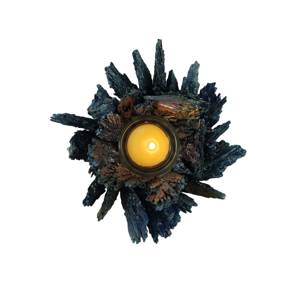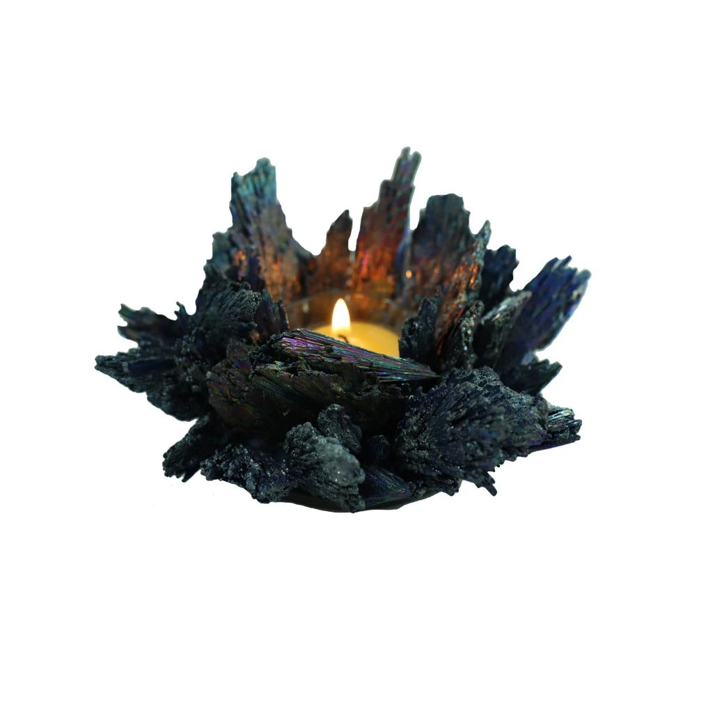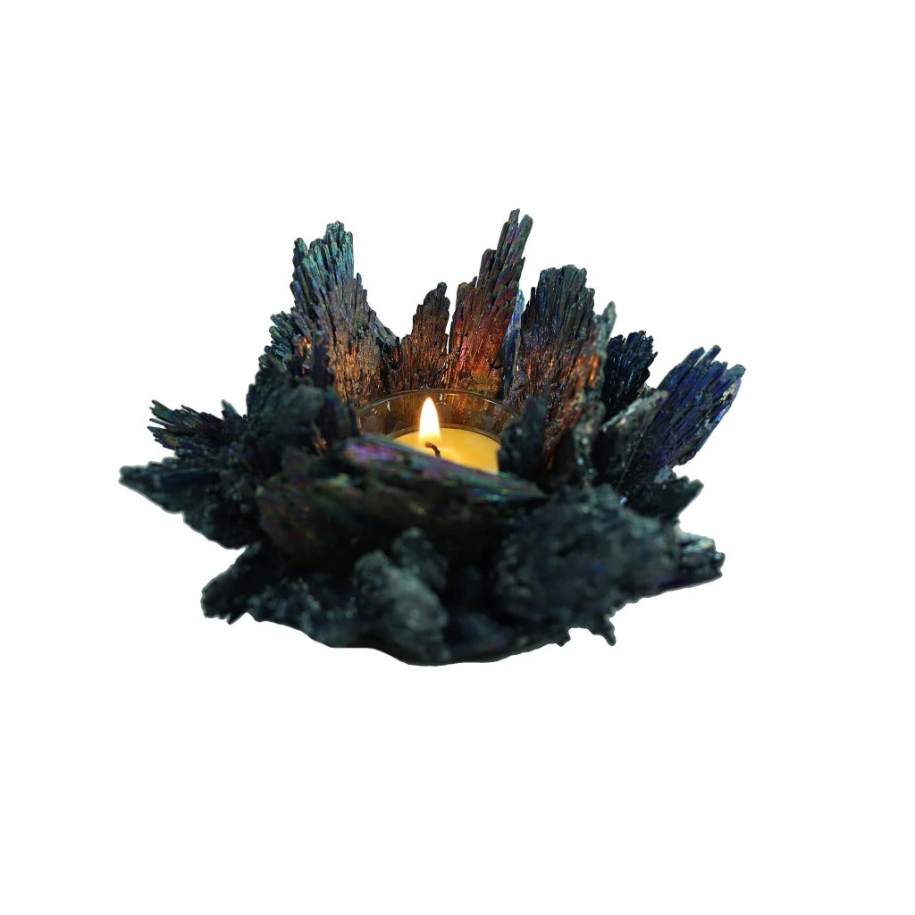 This stunning tea light candle holder is made from the beautiful kyanite crystal. Black kyanite is a sought after crystal that is a favorite among energy healers due to its amazing metaphysical and healing properties.Â