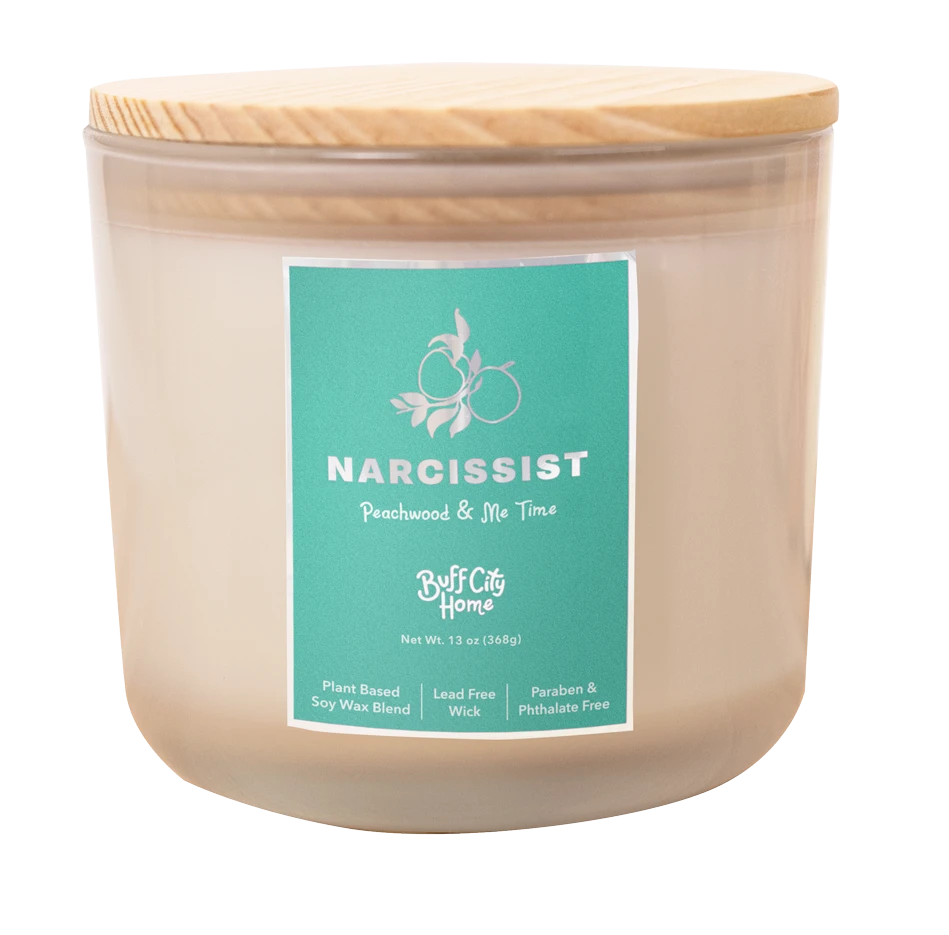 Narcissist 2-Wick Candle Made with a plant based soy wax blend and lead free wicks so your home can smell wonderful.