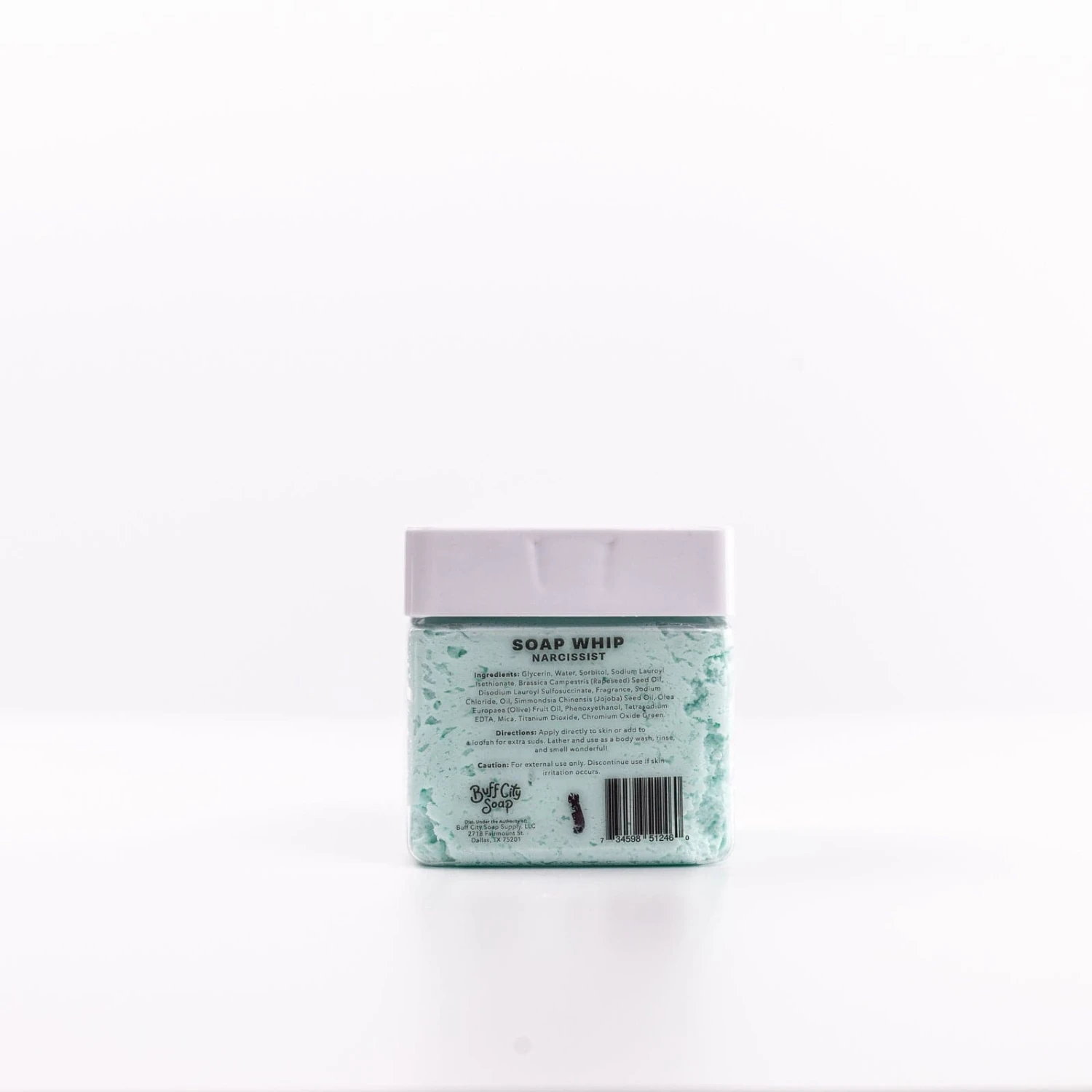 Narcissist Soap Whip Fall in love with the scent of your own skin. This Buff City Soap favorite is subtle yet luxurious, combining the sweetness of raspberry and peach with the warm embrace of patchouli and sandalwood.