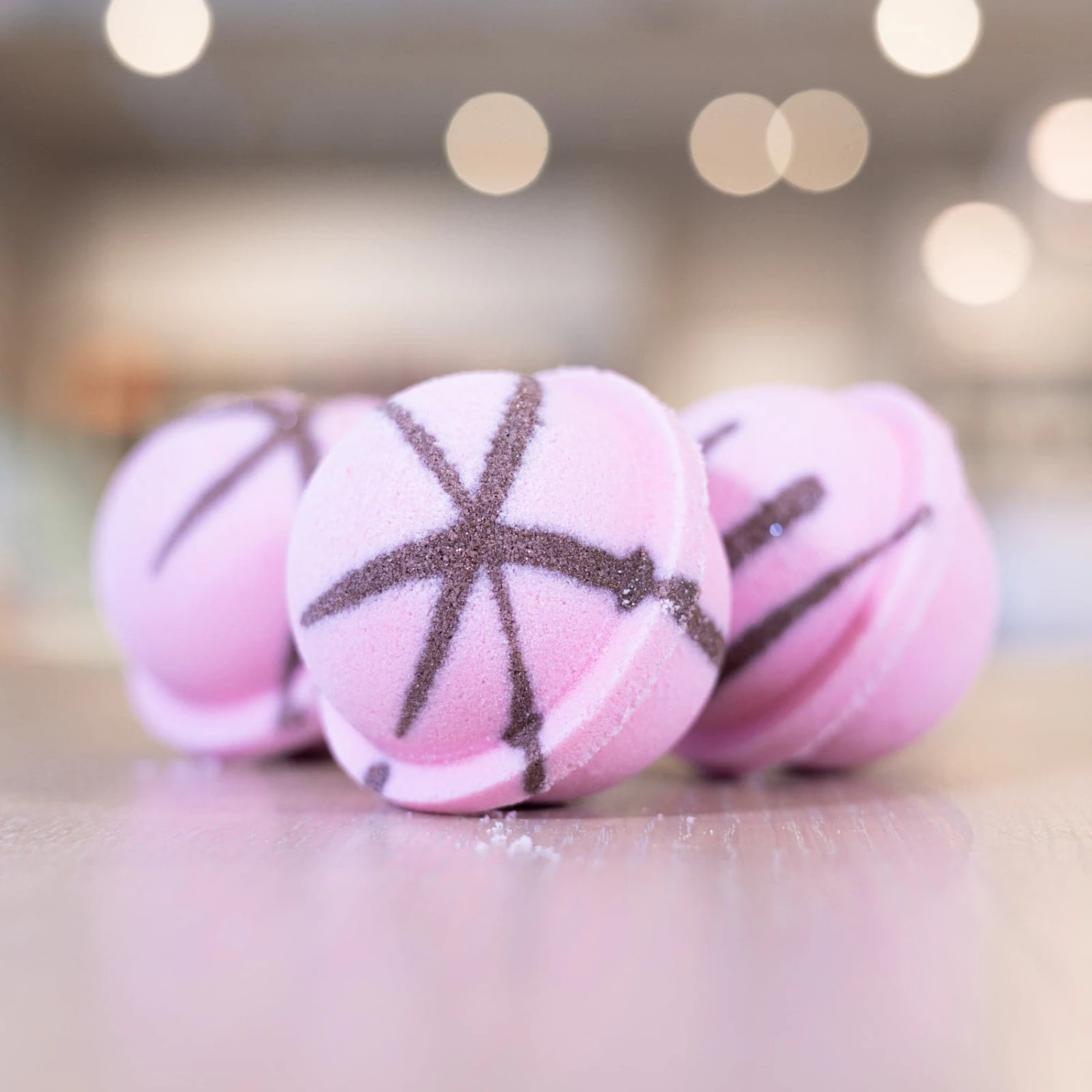 Pink Sugar Bath Bomb Pink Sugar is an airy confection of vanilla and caramel that recalls the most delicate sweet treats like puff pastry, spun sugar, and cakes with icing flowers.
