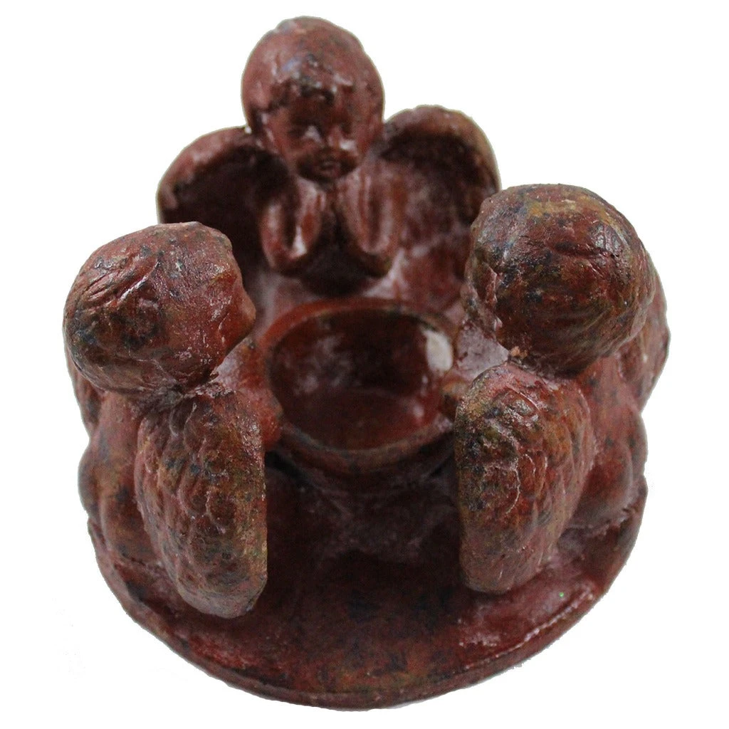 Spread love, grace and light with this circle of angels tea light candle holder handmade out of pottery finished in a South Western terracotta inspired style. At the center of this circle of angels is a single tea light candle holder. This holder comes in two sizes of five angels or three angels. Give this tea light candle holder to any loved on as a way to spread love and light to their home.