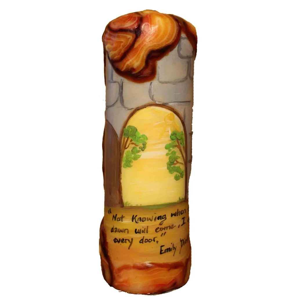Each of these beautiful pillar candles is hand painted. This creates wonderful variations in color and pattern from the candle you see photographed to the truly unique candle you receive. Photographed are two possible design options for the same quote candle. We hope you enjoy your Candlestock handmade experience!