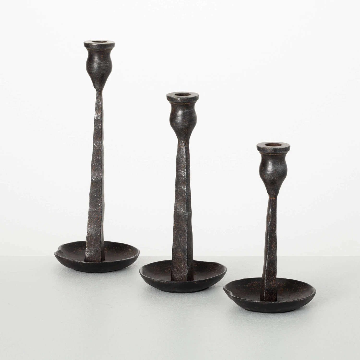 This Sleek Cast Iron Taper Candle Holder is the perfect accent to any home. With 3 sets of candle holders, you can create a warm atmosphere. The cast iron base ensures strong stability, while the sizes can be purchased separately for a more customized look.