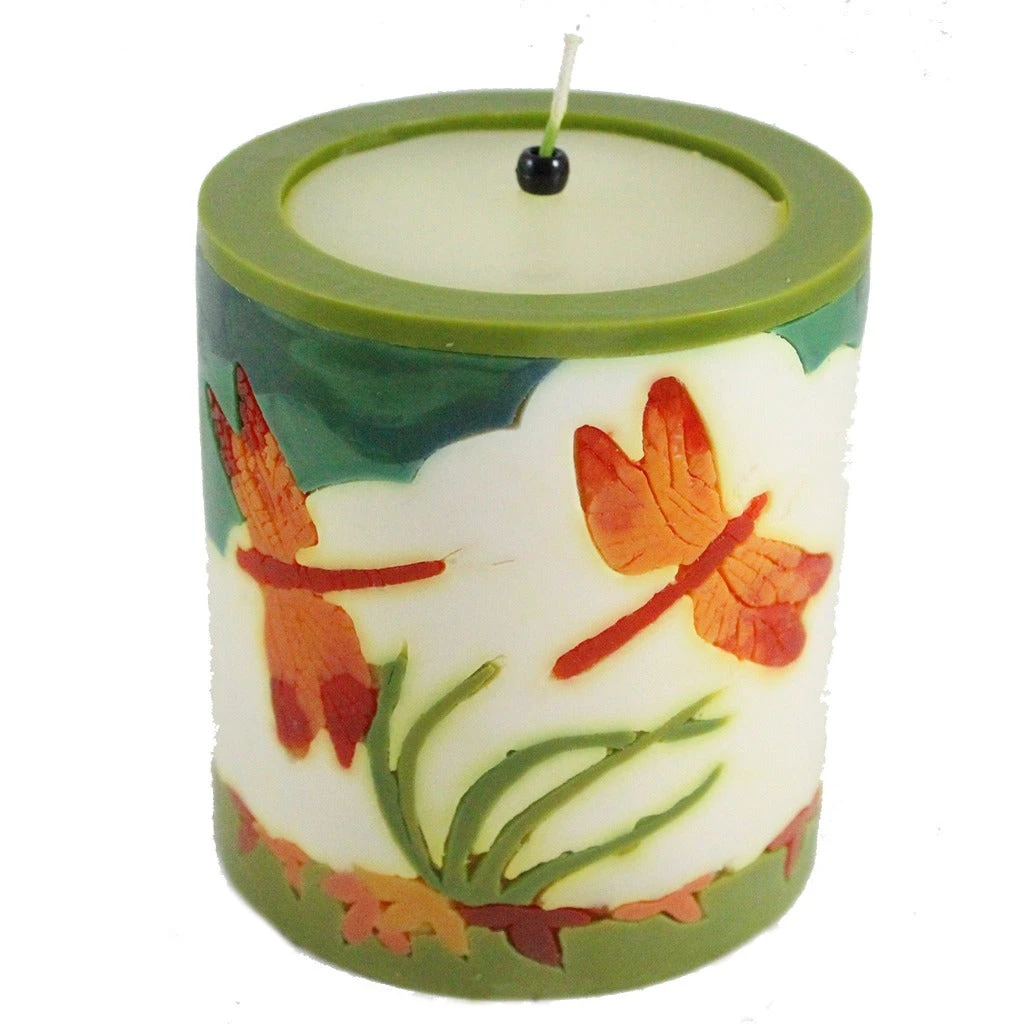 These candles come in blue plum, poppy, acron, lotus, dragonfly, hummingbird, butterfly orchid, holly, peony and bird, fall leaves, pinecones and pink plum.