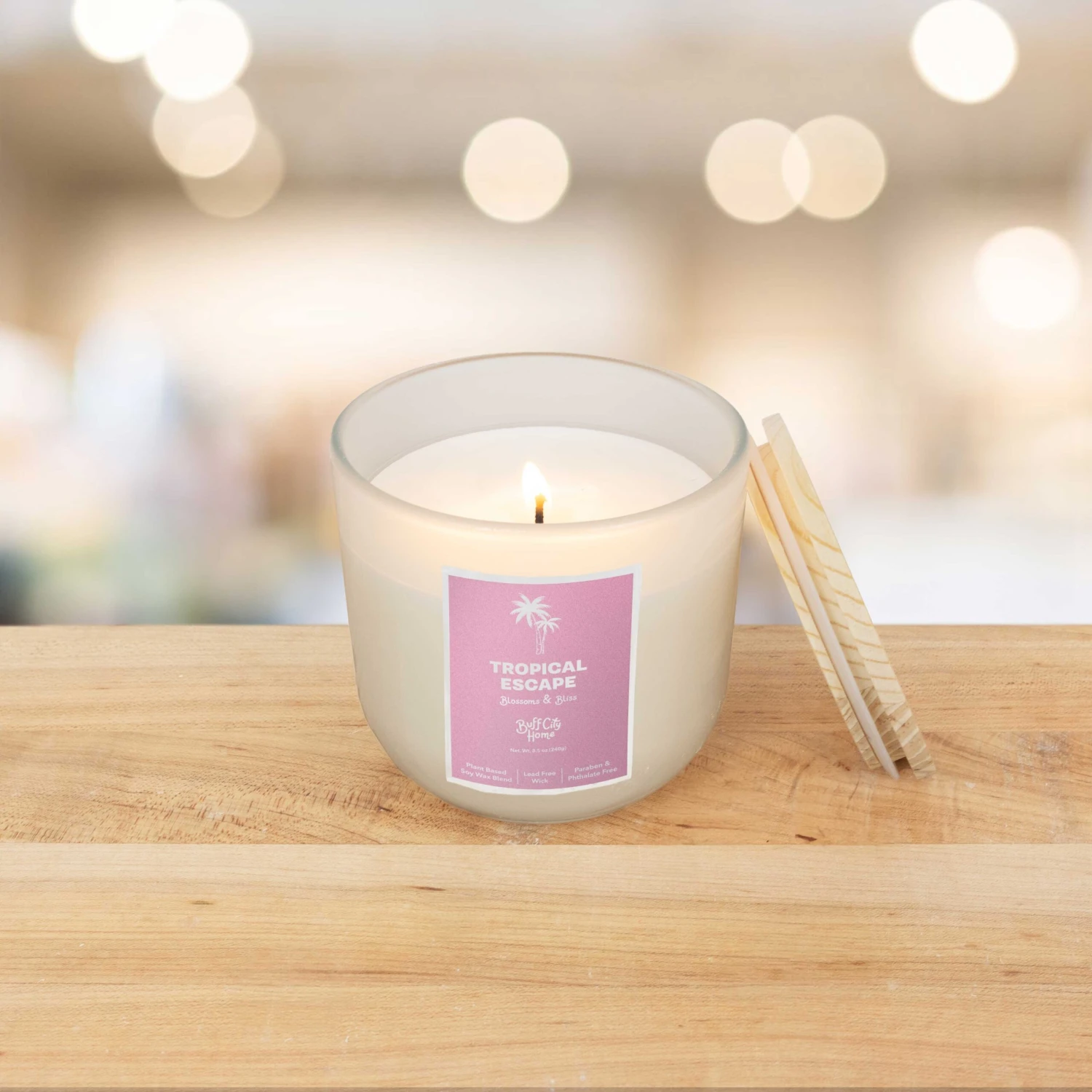 Tropical Escape Single Wick Candle Made with a plant based soy wax blend and a lead free wick so your home can smell wonderful.