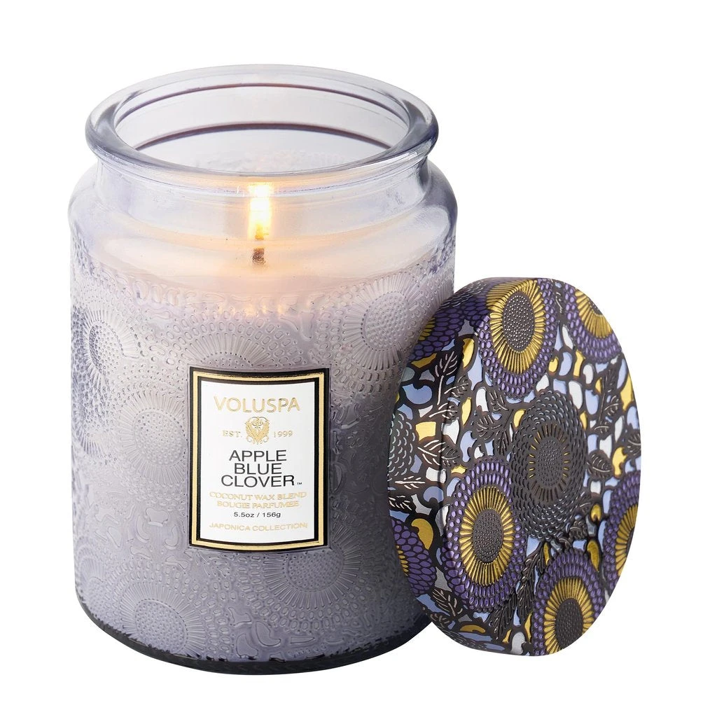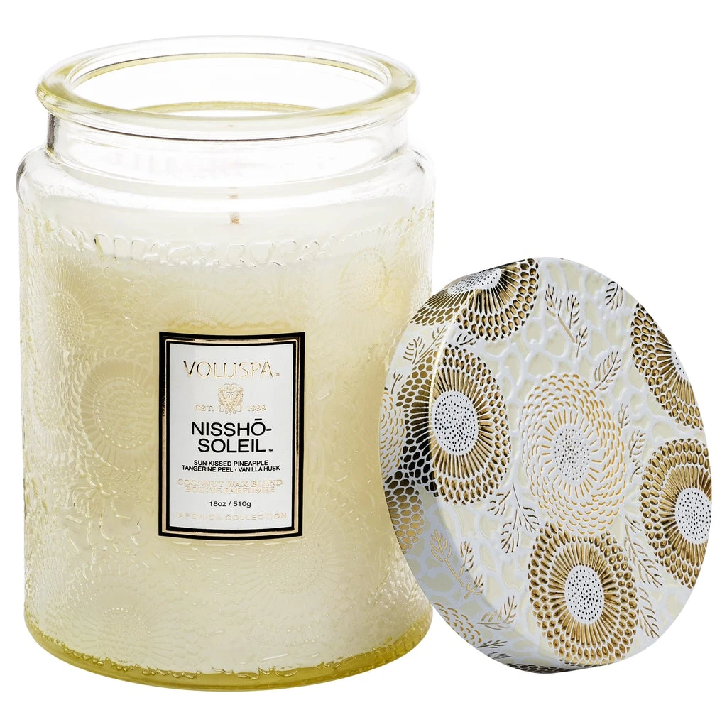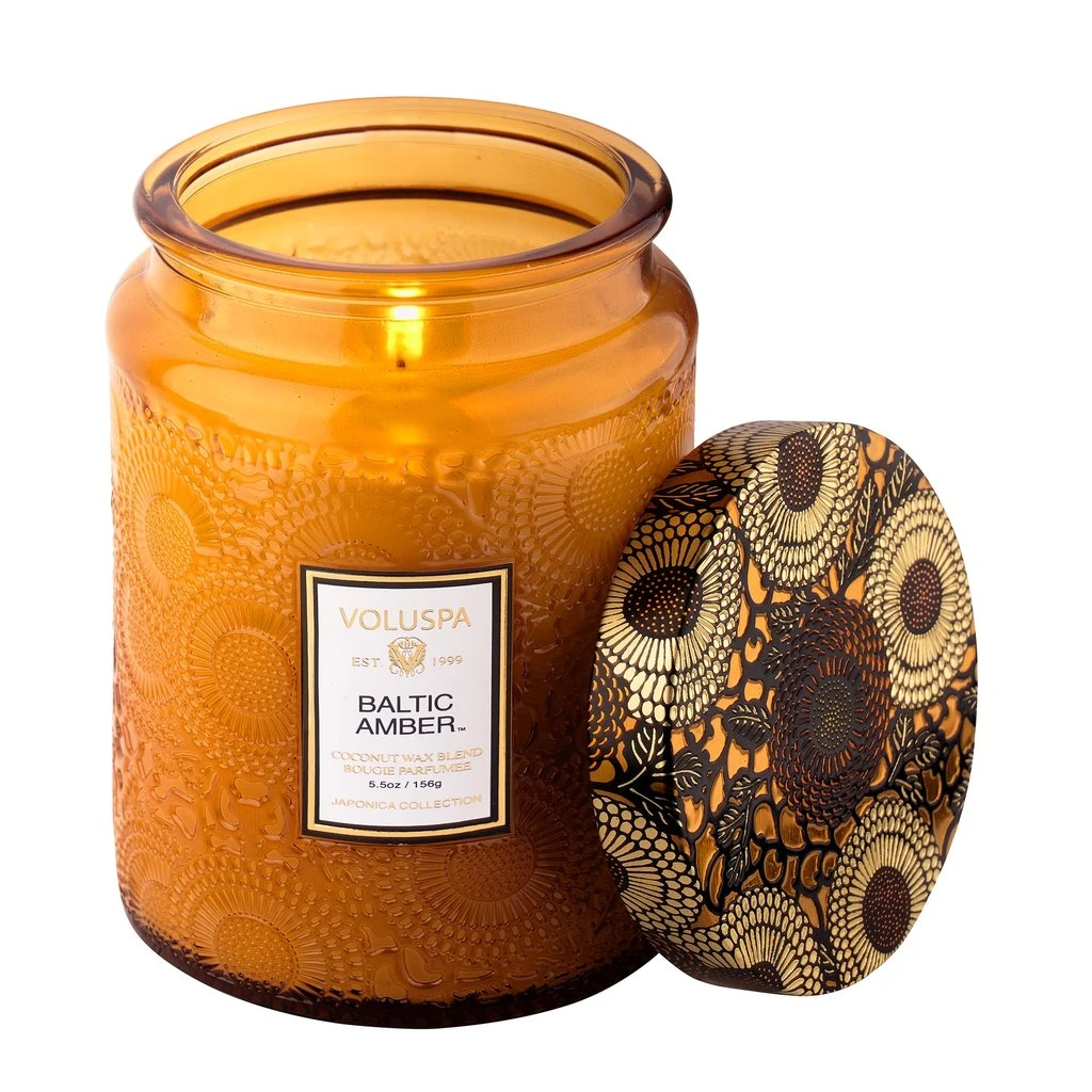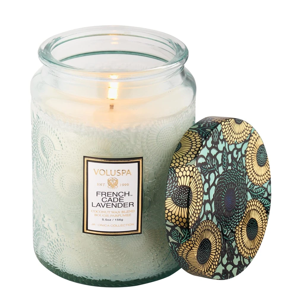 Add the wonderful aromas of Voluspa’s high quality candles with these scented glass jar candles. These candles come in classic colorful embossed glass jars that glimmer as the flame illuminates. You’ll love using the jar for jewelry, flowers or decor long after the candle is gone.