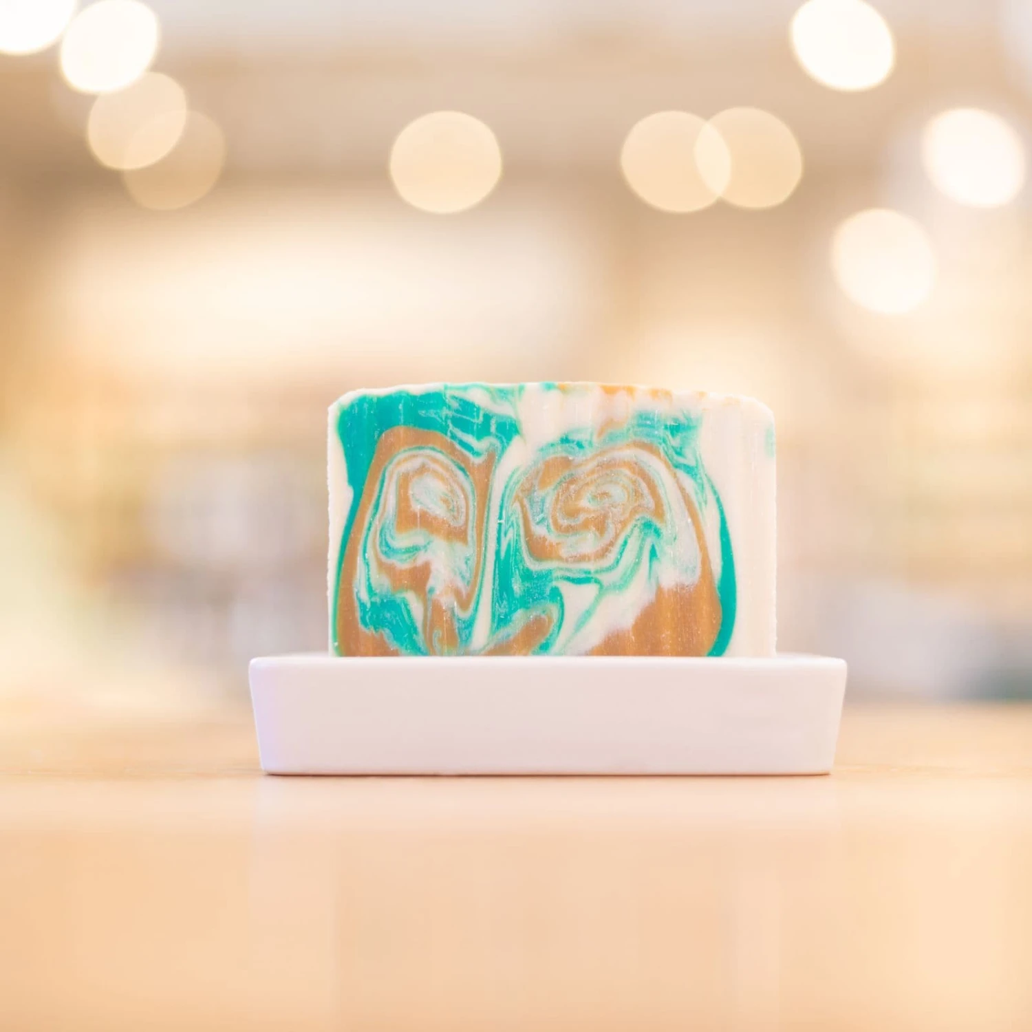 White Porcelain and Bamboo Soap Dish Our Porcelain + Bamboo Soap Dish is available in a neutral white color to stylishly keep your Soap Bar dry between uses! Spaces between the wooden slats help dry your soap while the porcelain tray keeps water from spreading across your counter and tub.